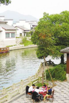 上河坊花园餐厅:位于上塘河畔的花园餐厅,临水而坐,欣赏古运河、远眺皋亭山、黄鹤山,就像是在观赏一幅巨大的山水画卷,可同时容纳180余人用餐。地址:沿山村赤岸桥丁兰路7号,订座电话:85831330/13588479799。