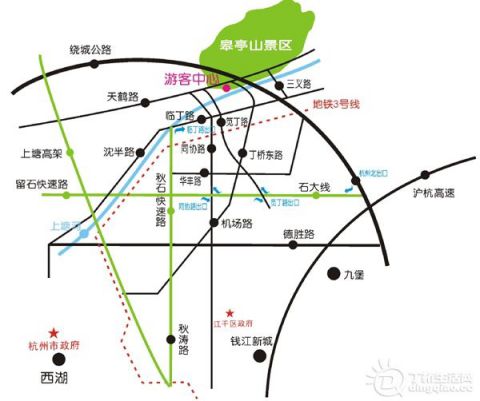 公交线路:B3快速公交到丁桥站换乘345,或K94、305、355、834、609、677路公交车到笕桥换乘345,沿三义路到达金门槛站;335到赵家社区换乘667路沿金山路到沿山站(游客中心)。